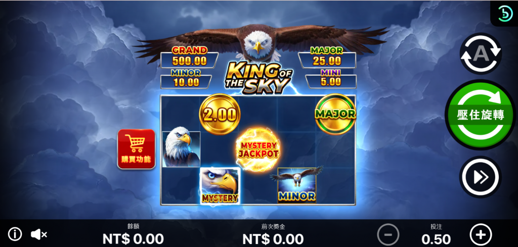 遊戲核心由兩組精心設計的圖示構成,強化冒險感與尊榮感:象徵財富的金幣作為獎金圖示,是通往黃金獎金遊戲的大門;象徵力量與主宰的雄鷹圖示則展翅高飛,引領玩家進入雄鷹獎金遊戲。