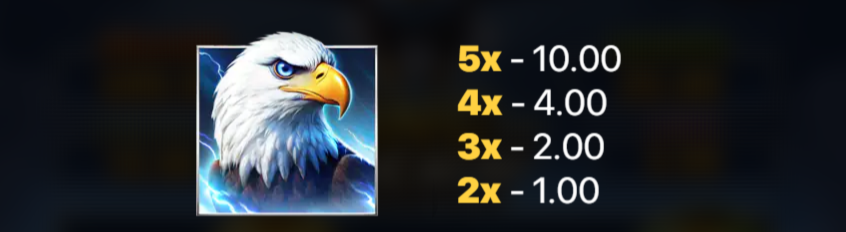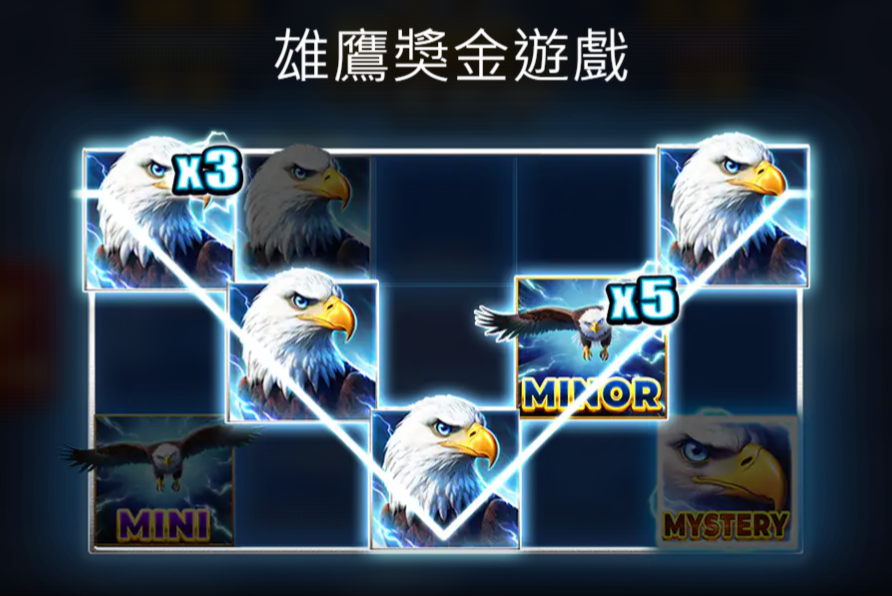 雄鷹神秘圖示將轉變為雄鷹圖示或雄鷹神秘 Jackpot 圖示。乘上乘數讓每一次贏得更有電力。