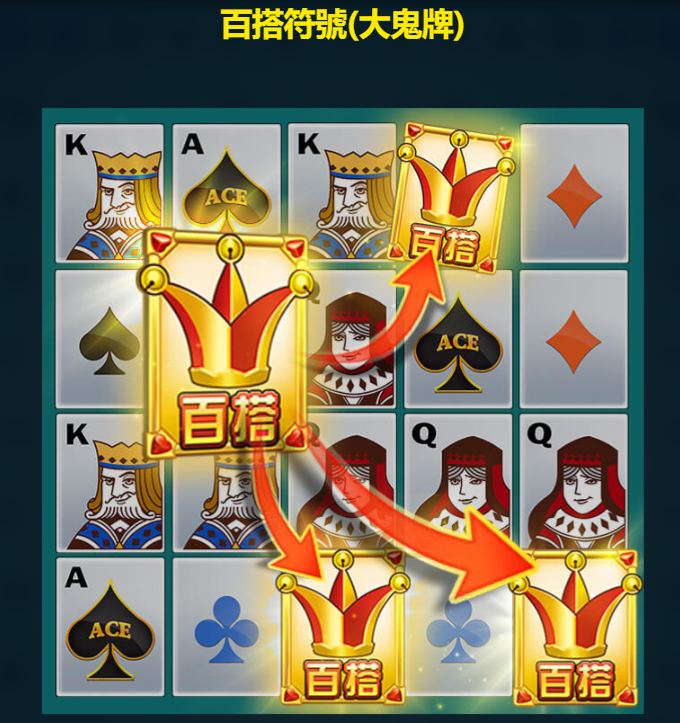 - 轉換為百搭符號時,隨機變為兩種之一:小鬼牌或大鬼牌。